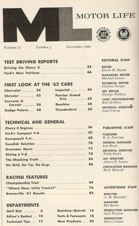 Reviews MOTOR LIFE 1961 NOV - CHEVY II, DODGE POLARA, FORD FAIRLANE, FORDS NEW V-8