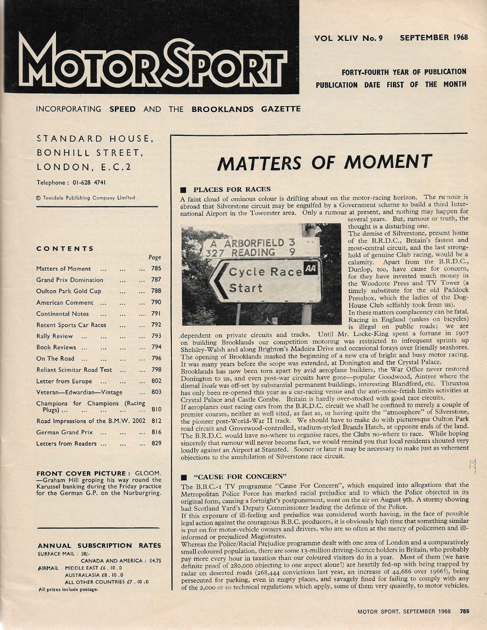Reviews MOTOR SPORT 1968 SEPT - RELIANT SCIMITAR GT & BMW 2002 TESTED, OULTON*