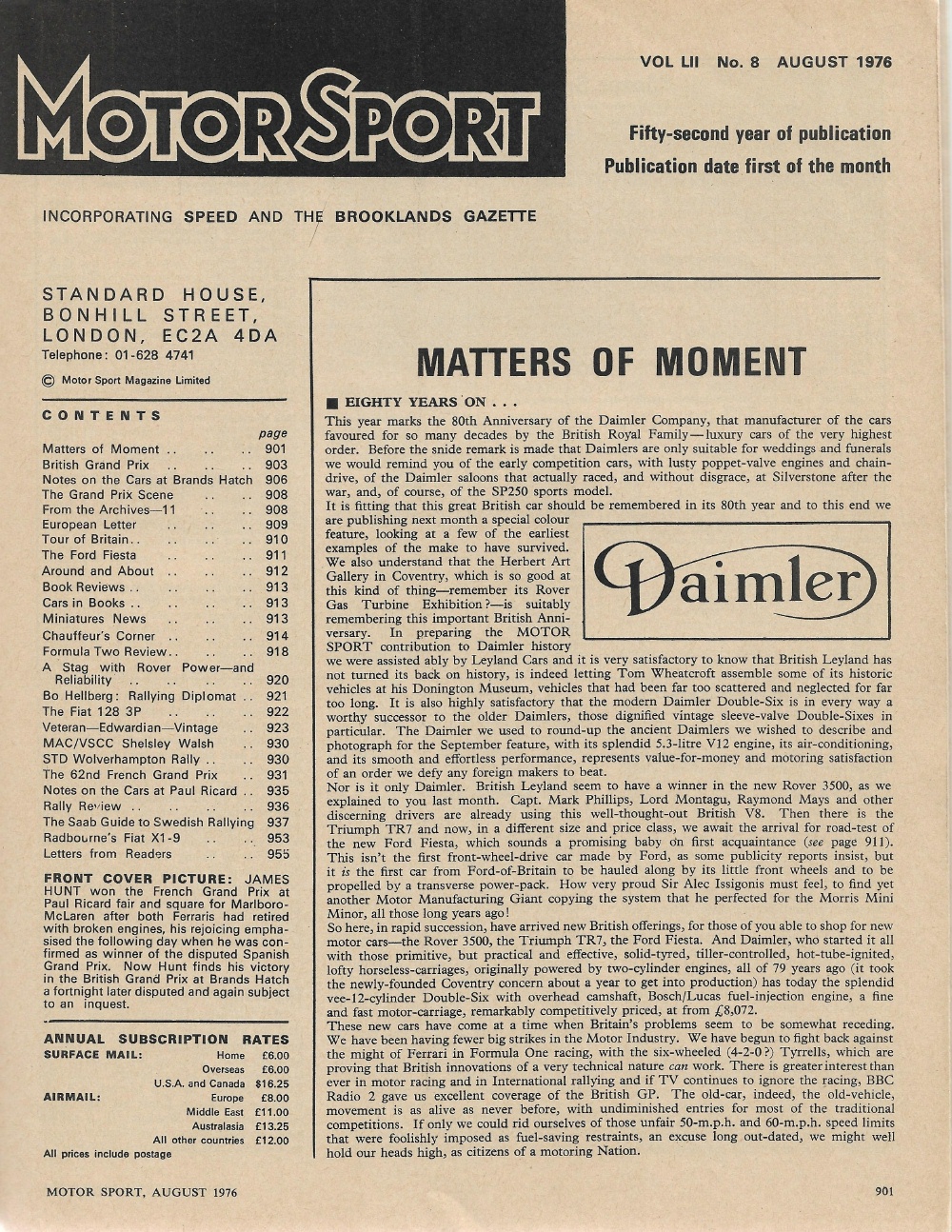 Reviews MOTOR SPORT 1976 AUG - FIAT XI-9 & 128 3P, STAG 3500 V8, SAAB