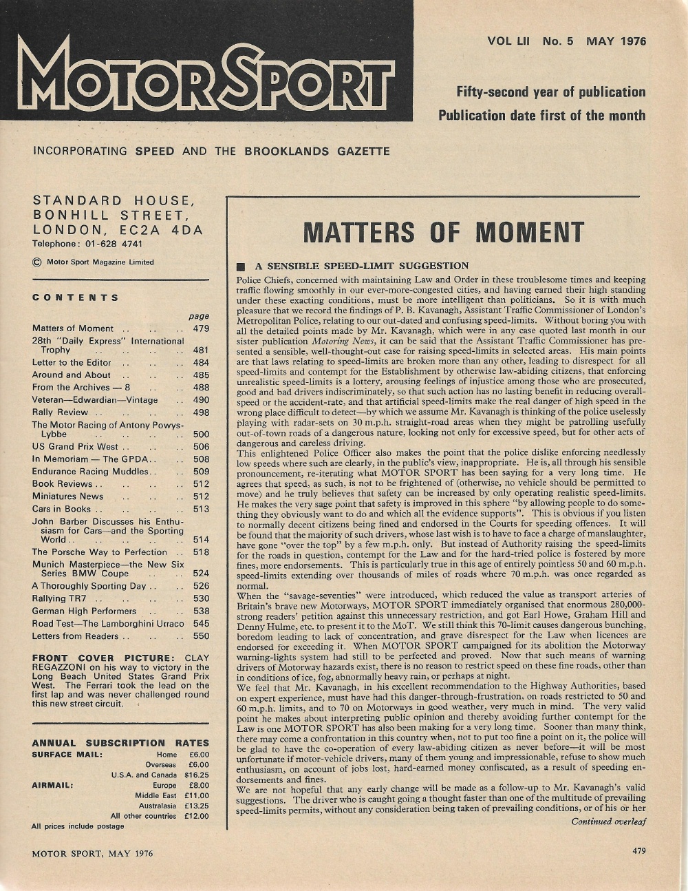 Reviews MOTOR SPORT 1976 MAY - TR7 RALLY, LAMBO URRACO, BMW 6-SERIES