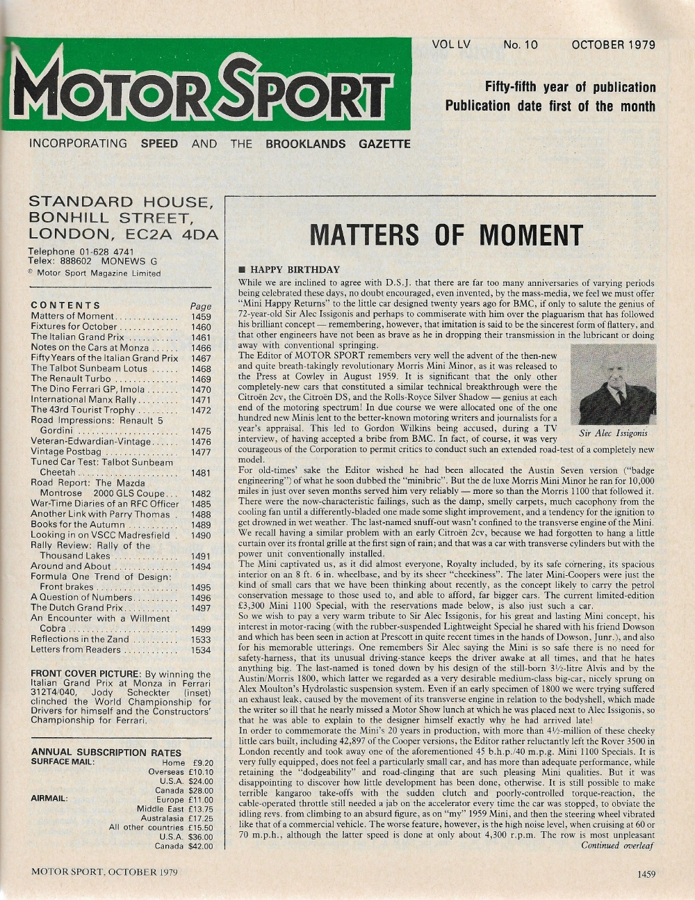 Reviews MOTOR SPORT 1979 OCT - GORDINI, SUNBEAM CHEETAH, MAZDA MONTROSE GLS