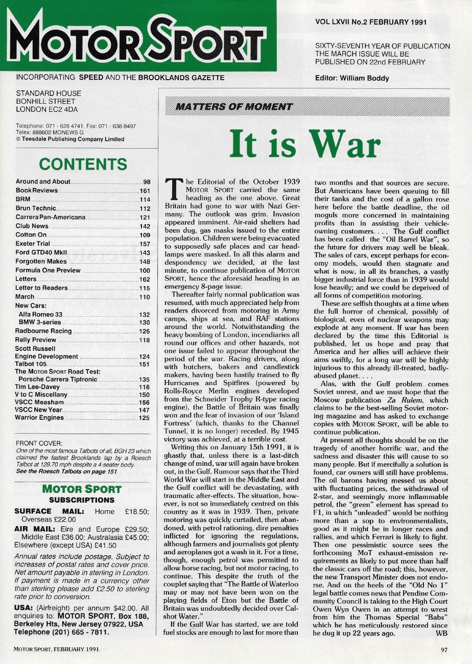 Reviews MOTOR SPORT 1991 FEB - FORD GTD 40 MkII, ROESCH TALBOT 105, 911 TIPTRONIC