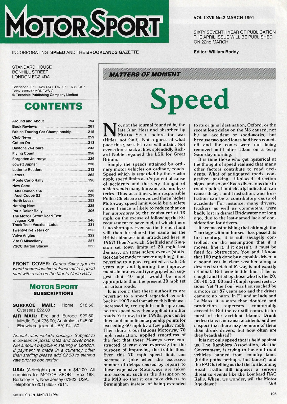 Reviews MOTOR SPORT 1991 MAR - VAUXHALL LOTUS, JOWETT JUPITER, JAG XJ6 3.2