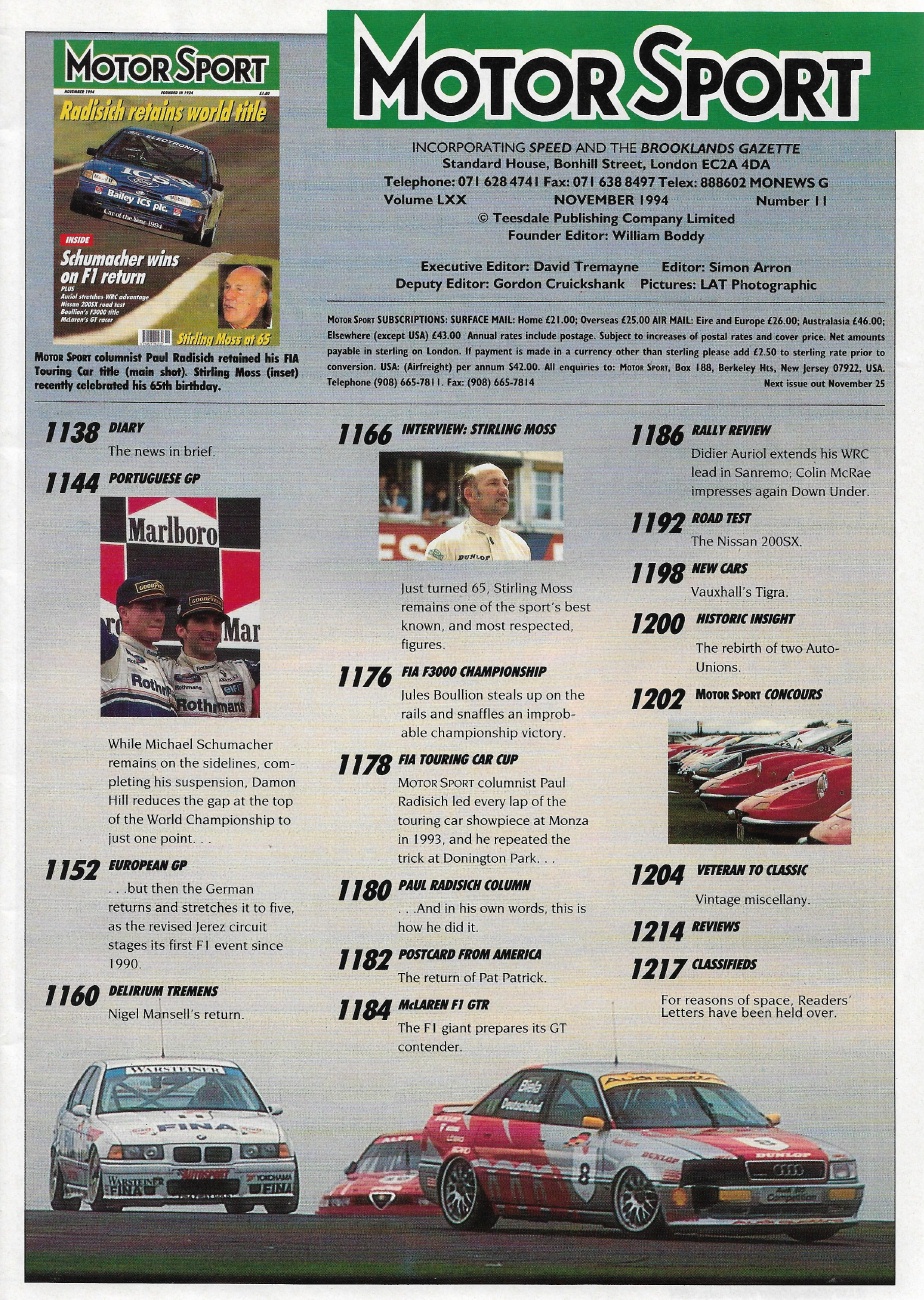Reviews MOTOR SPORT 1994 NOV - MOSS, AUTO UNION, PERCY THOMAS, NISSAN 200SX