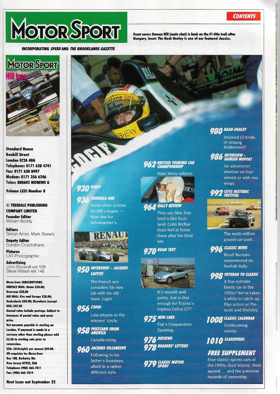 Reviews MOTOR SPORT 1995 SEPT - NASH-HEALEY, MOFFAT, McRAE, CELICA CABRIOLET