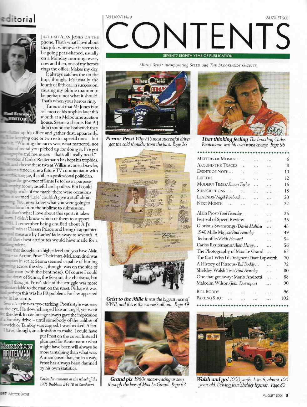 Reviews MOTOR SPORT 2001 AUG - PROST, ROEBUCK, '40 MILLE MIGLIA, PEUGEOT 205 T16