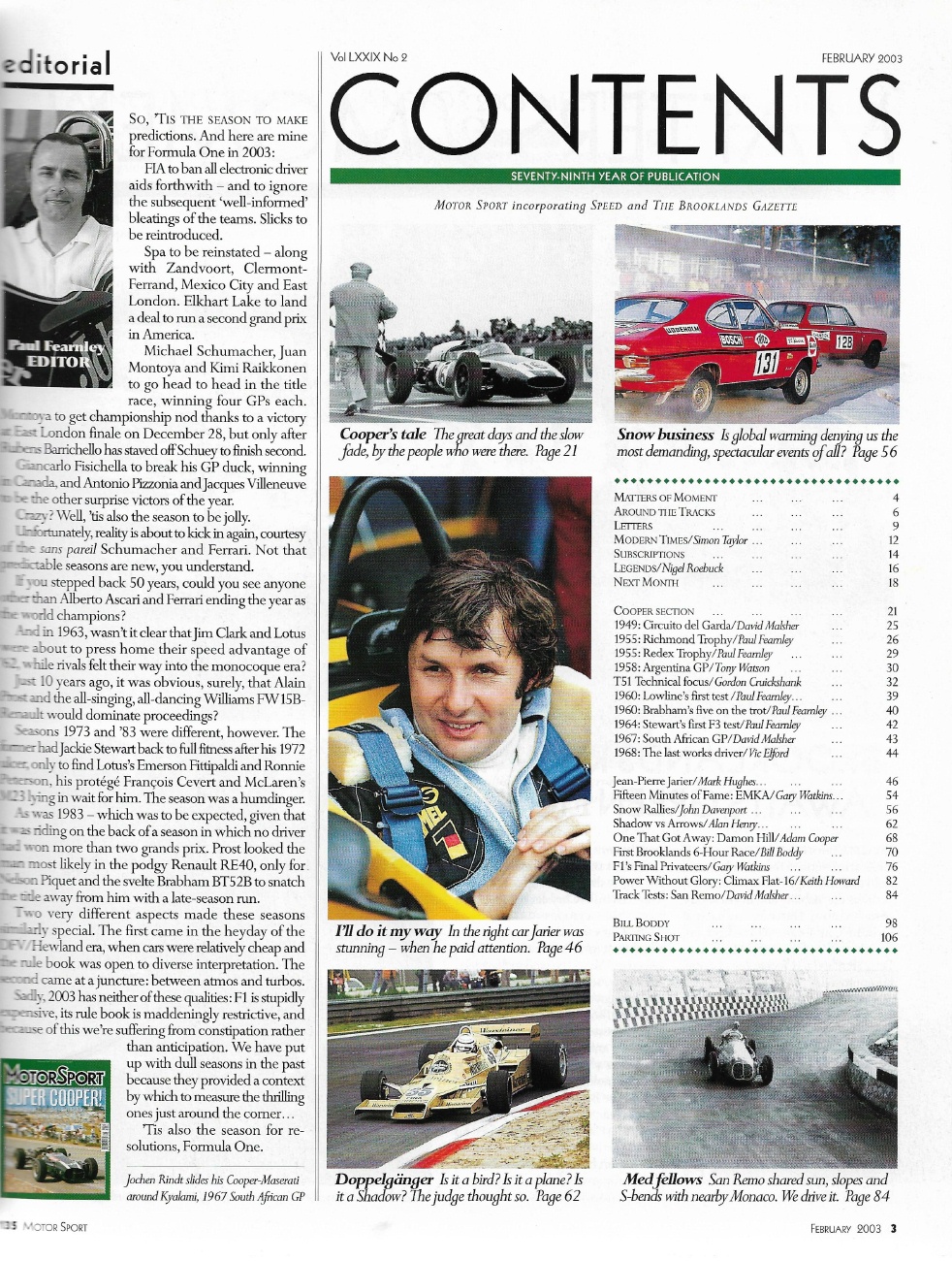 MOTOR SPORT 2003 FEB - COOPER Spcl, CLIMAX FLAT 16, SEGRAVEs 200