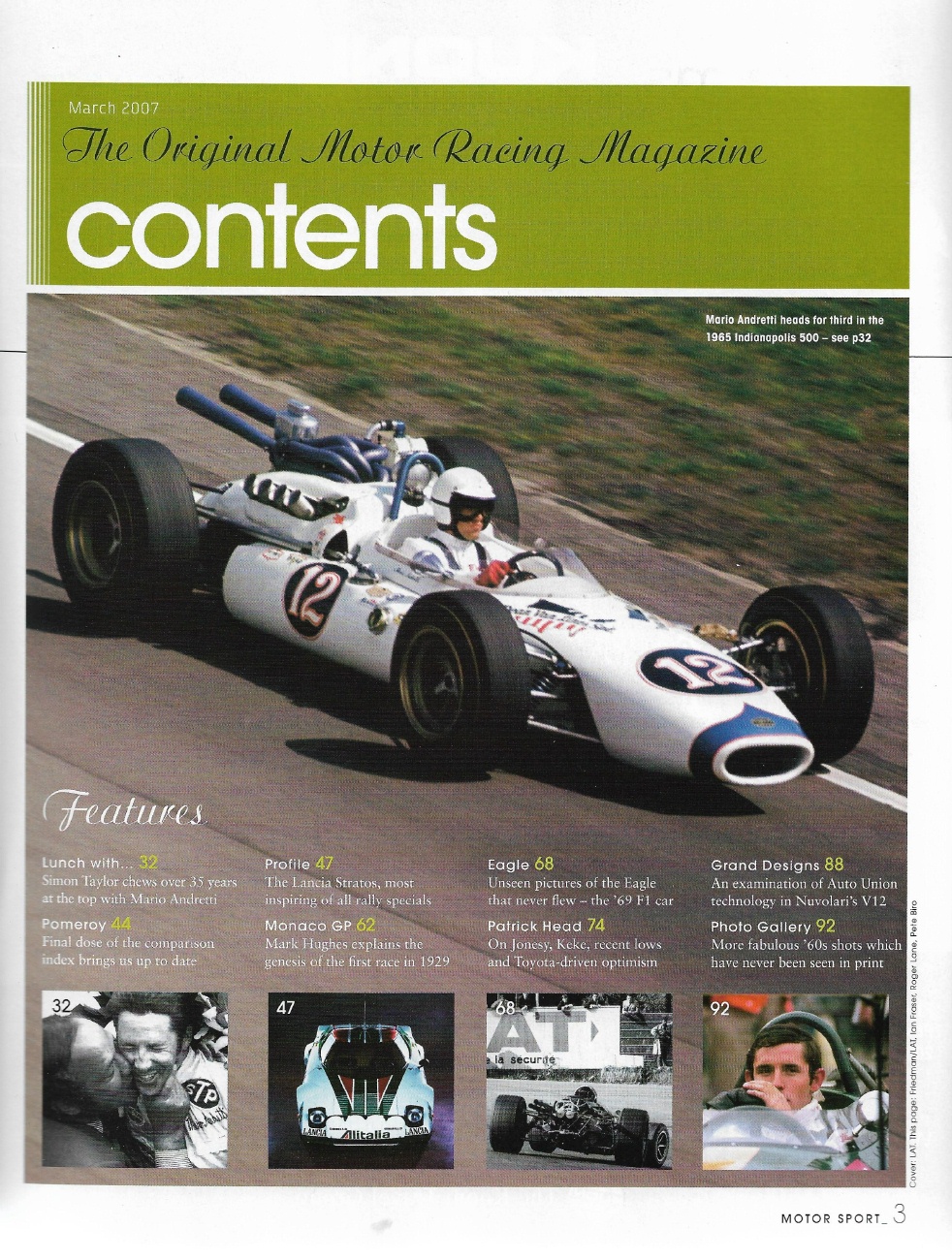MOTOR SPORT 2007 MAR - ANDRETTI, STRATOS, E-TYPE, 1969 EAGLE
