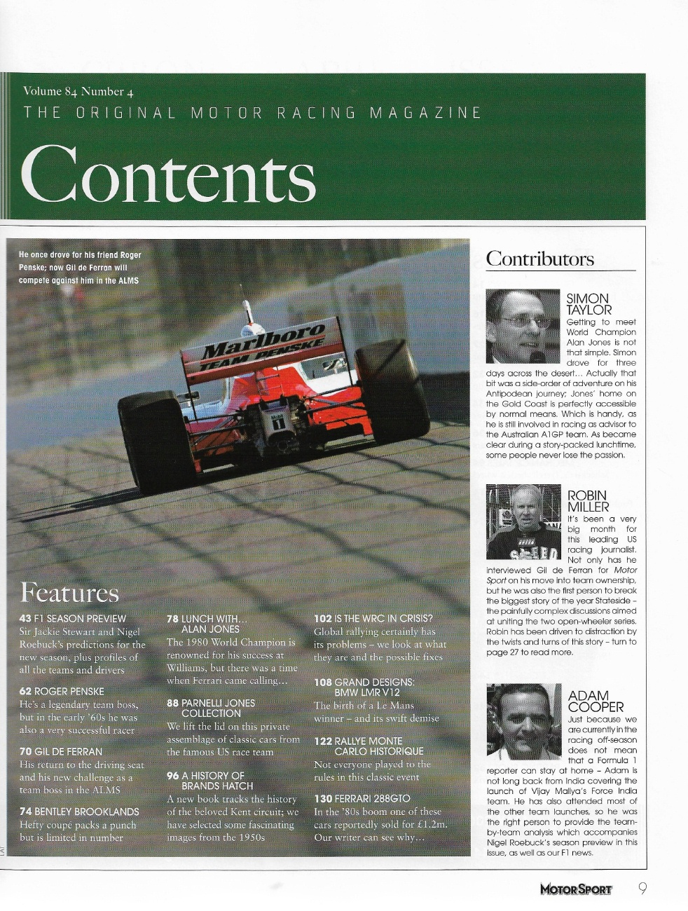 MOTOR SPORT 2008 APR - PARNELLI, PENSKE, BMW V12 LMR, 288 GTO