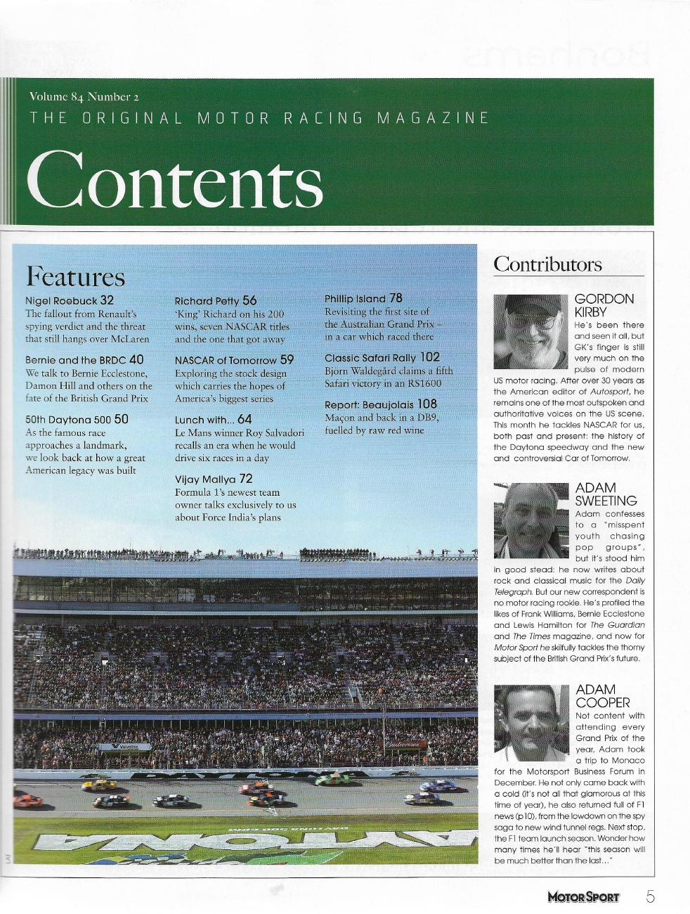 Reviews MOTOR SPORT 2008 FEB - PETTY, DAYTONA 500, MARCOS, LAMBO REVENTON