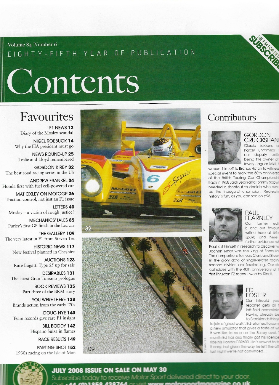 MOTOR SPORT 2008 JUNE - DENNIS, AMON, ALFA ROMEO SS, SCOTT BROWN