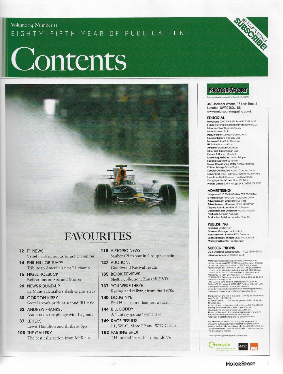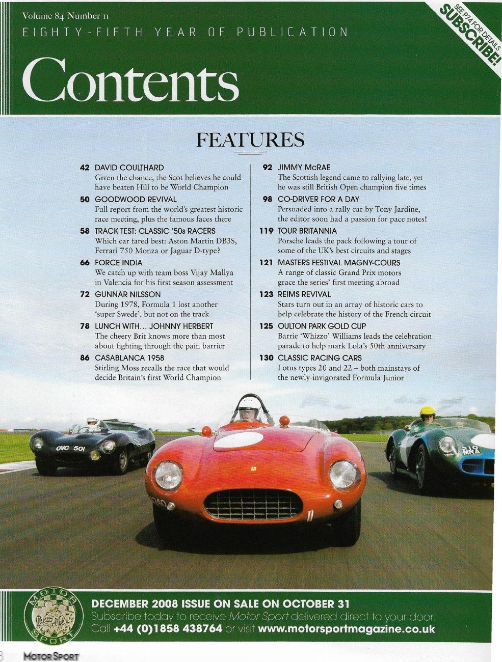 MOTOR SPORT 2008 NOV - PHIL HILL, LOTUS 20-22, DB3S v MONZA v D-TYPE
