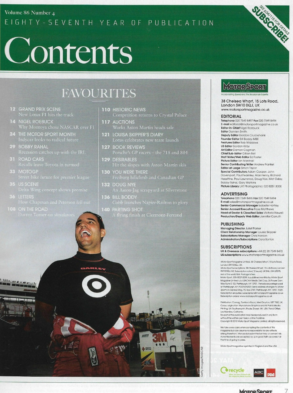 MOTOR SPORT 2010 APR - SCHUMACHER, A-M RAPIDE, Lt Wt DAYTONA, COBB