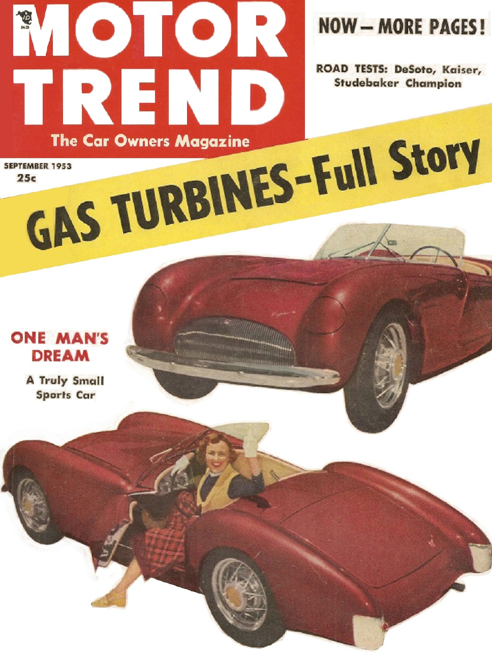MOTOR TREND 1953 SEPT Vol 5 No 9 - PACKARD, COMMANDER, MANHATTAN, CUSTOMSWithin this very hard to find issue you will discover the following topics: 1) Gas Turbines, how they work and possible automotive uses 2) The latest in auto air conditioners 3) Traffic control problems and solutions 4) Testing the '53 Kaiser Manhattan 5) Testing the '53 Studebaker Champion 6) Vacationing in Southern California 7) Vince Gardner & his sweet sports car (Cover Car) 8) Auto news from Detroit, Europe & from the racing world 9) Custom trends with: A) Ed Mersick's '41 Chevy convertible B) R.R. Reed's scratch-built convertible C) Irwyn P. Metzenbaum's Lincoln D) Ted Lundquist's '51 Kaisersedan convertible E) Camile Zanca's cool '50 Mercury coupe F) Charles Stuart's '53 Studebaker Commander convertible 10) Checking out the "Stardust" sports car from Bill Grantham 11) Drag racing at the Orange County Airport in Santa Ana 12) A special on Packard, then & now 13) Specifications of all the production cars from around the world 14) Coverage of the '53 24-Hours at LeMans Plus other interesting items. |