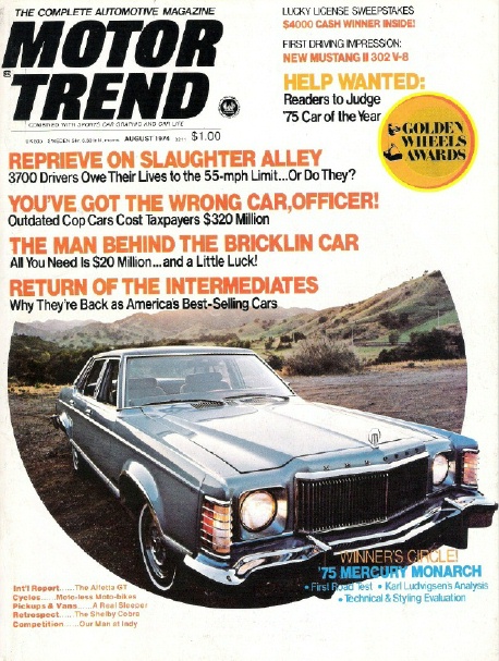 Reviews MOTOR TREND 1974 AUG - SHELBY COBRA, IECO VEGA, ELITE