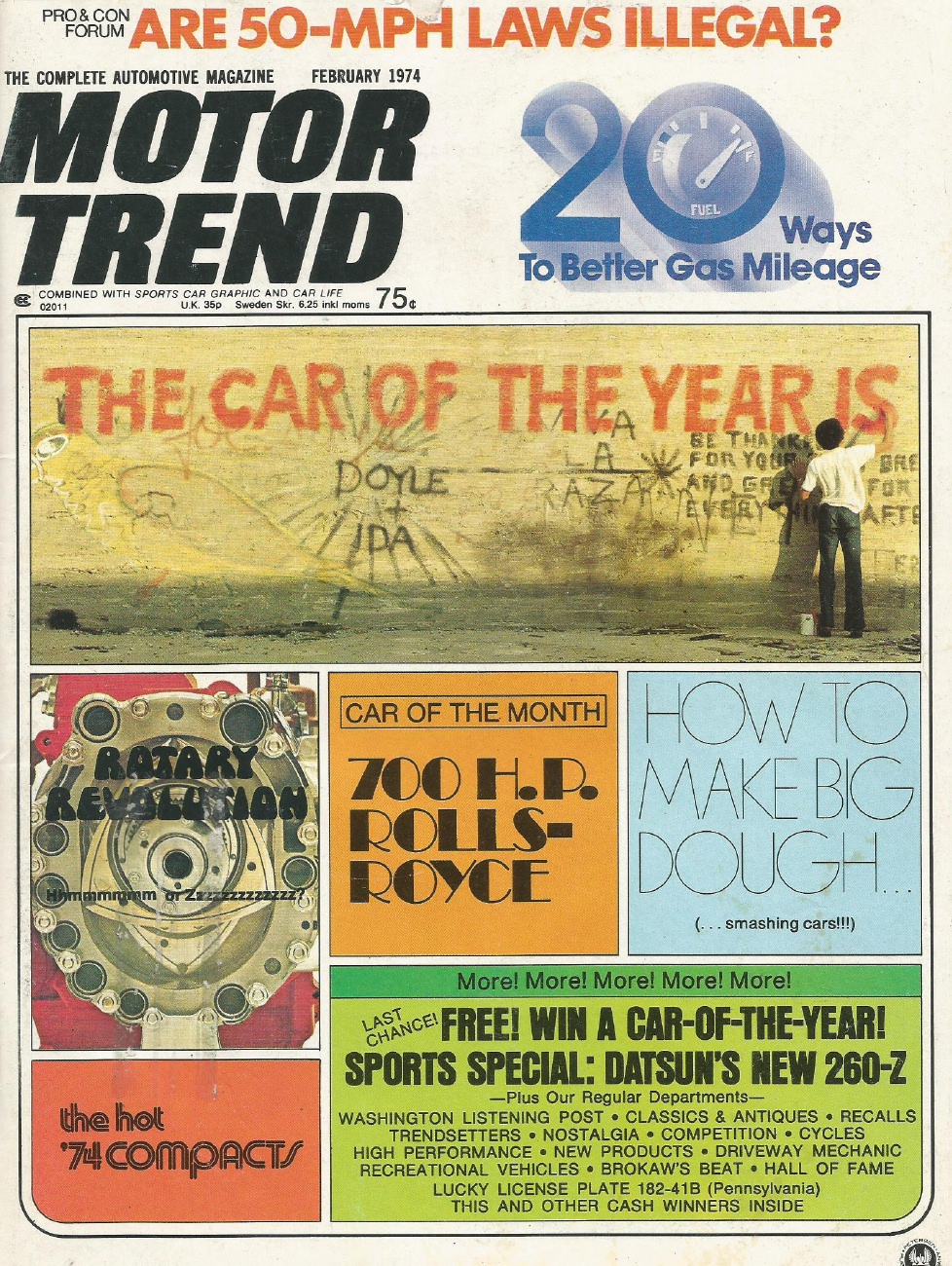 Reviews MOTOR TREND 1974 FEB - MUSTANG II, 260Z, RUXTON