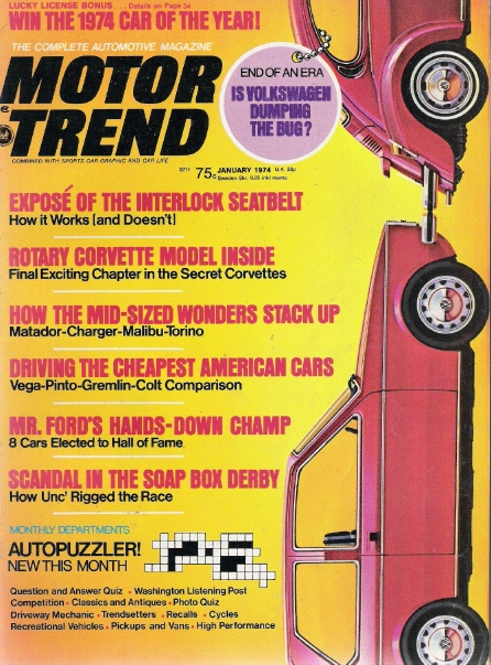Reviews MOTOR TREND 1974 JAN - SOAP BOXERS, SUPERCHARGING
