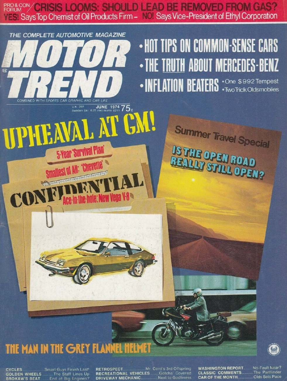 MOTOR TREND 1974 JUNE - Hurst/Olds, VEGA V8, CORD