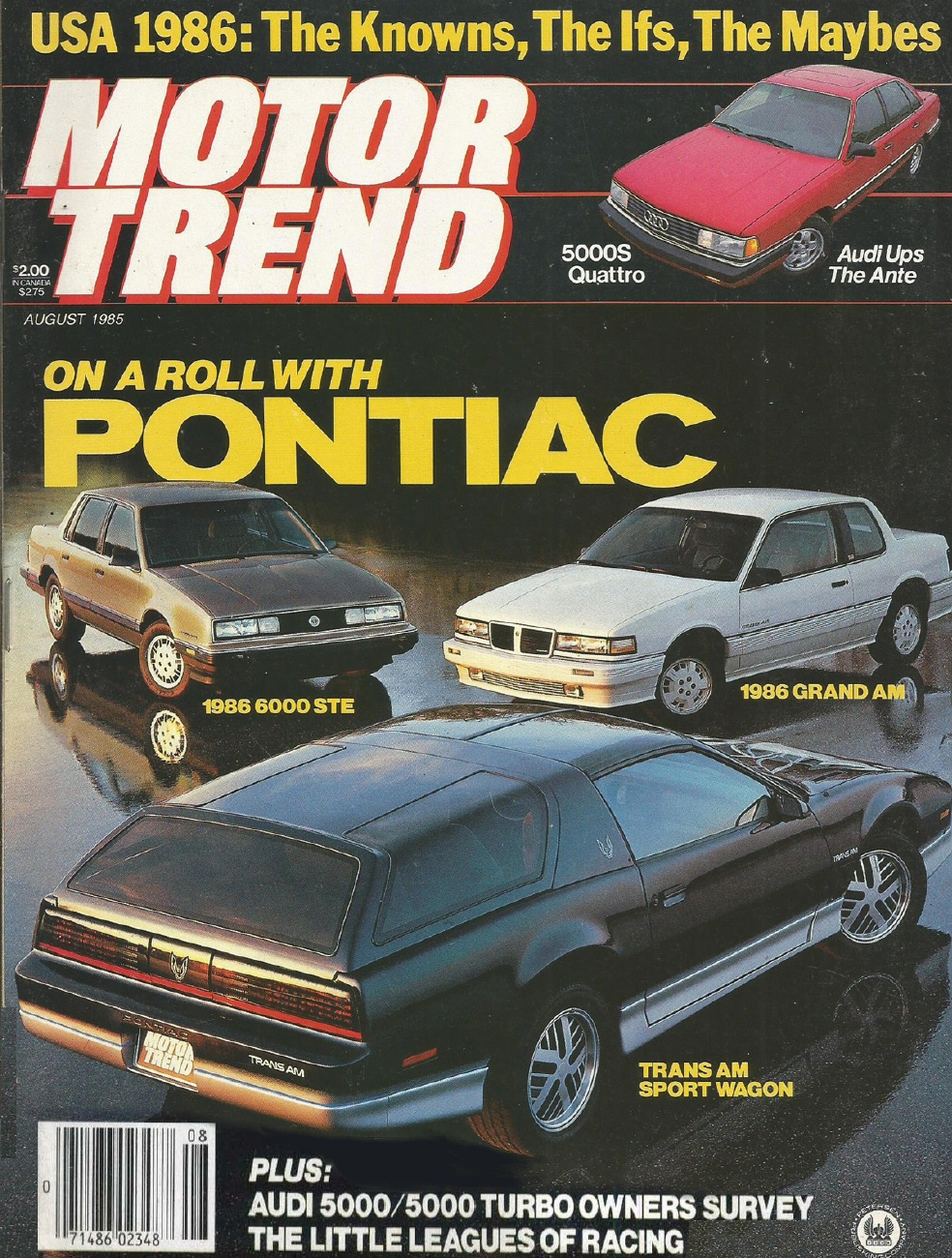 MOTOR TREND 1985 AUG - T/A WAGON, XR4Ti, MILANO