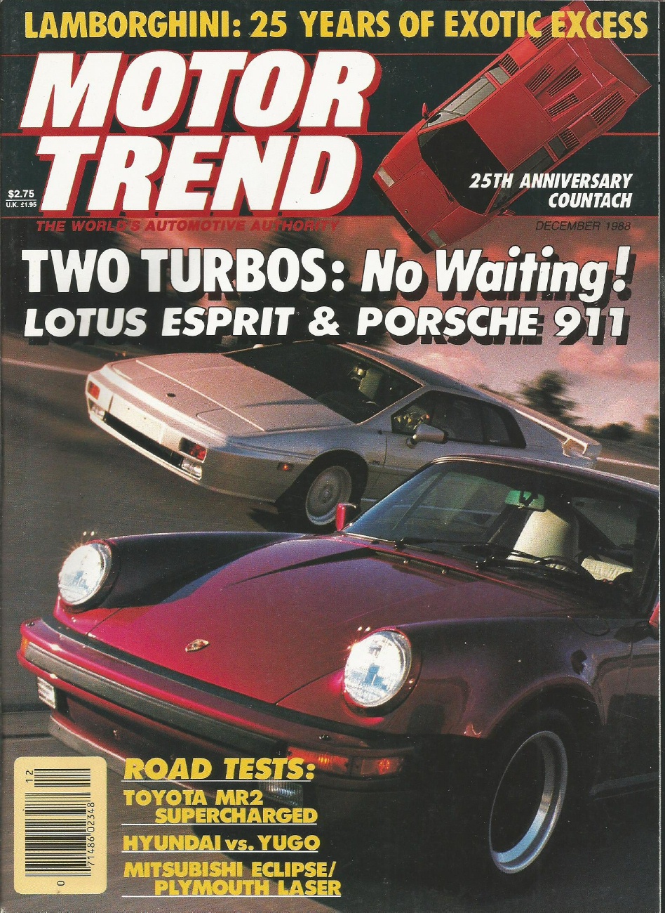 Reviews MOTOR TREND 1988 DEC - LAMBO, 911 vs ESPRIT, SHO, MR2