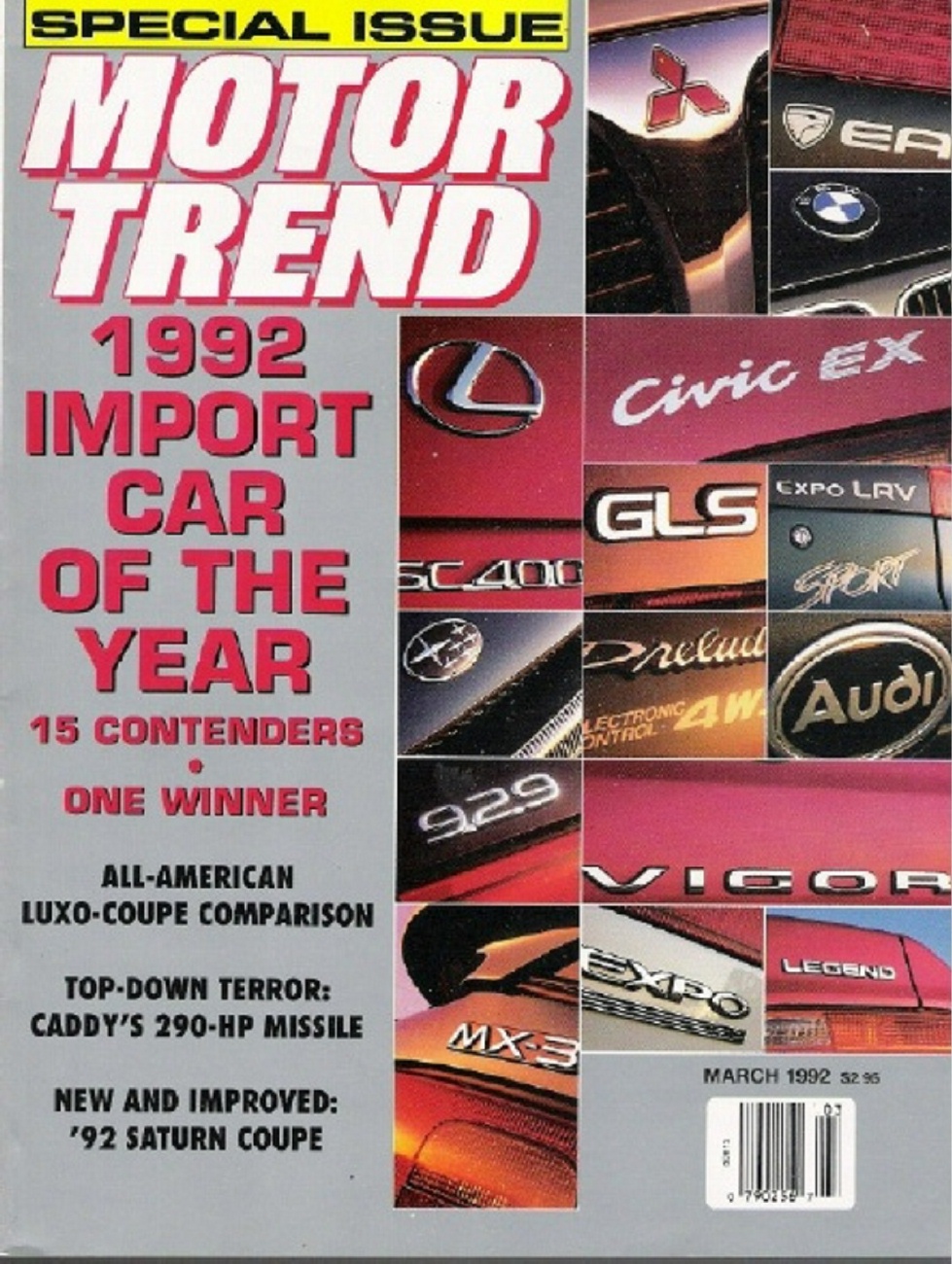 MOTOR TREND 1992 MAR - CHRYSLER TURBINE, Si 4WS, SVX