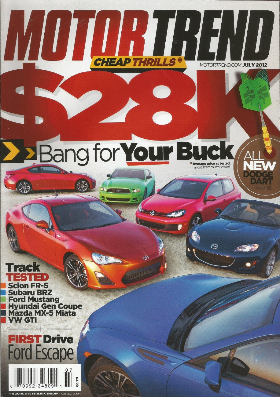 Reviews MOTOR TREND 2012 JULY - ACURA ILX, DART, JX35 AWD, DUELLING ECONO SPORTSCARS