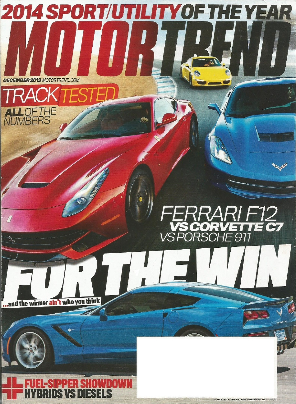 Reviews MOTOR TREND 2013 DEC - FERRARI F12 vs STINGRAY Z51 vs 911 4S, SUV OF THE YEAR