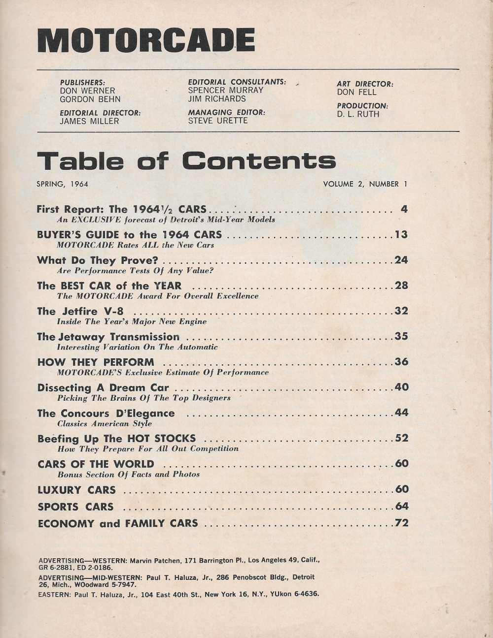 Reviews MOTORCADE 1964 SPRING - FIRST REPORTS ON '64 1/2 CARS, NEW ENGINES, SPORTS CARS
