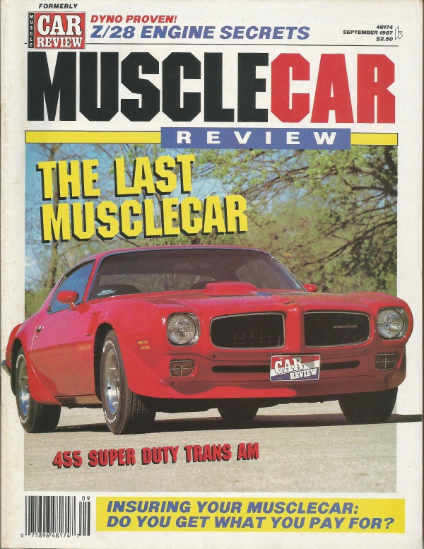 Reviews MUSCLE CAR REVIEW 1987 SEPT - BERGER, SCJ, Hi-Po, T/A, 455 SD T/A,Z28 ENGINE