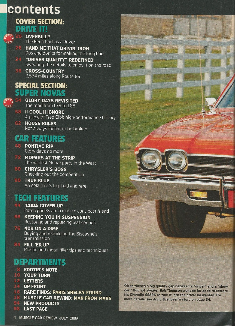 Reviews MUSCLE CAR REVIEW 2009 JULY - PONIAC & NOVA Spcls, BOSS 302, HEMI DART*