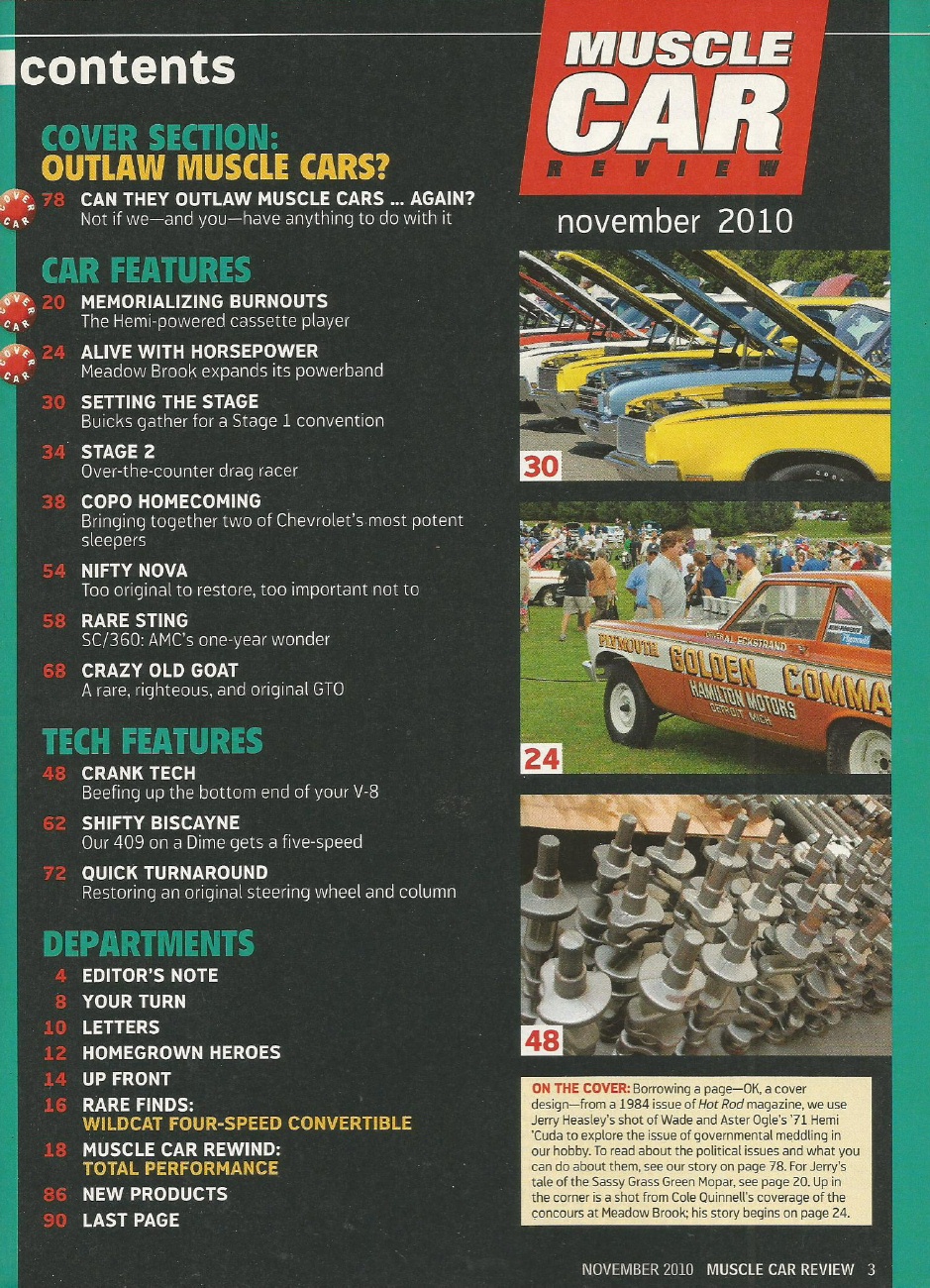 Reviews MUSCLE CAR REVIEW 2010 NOV - COPO, HEMI CUDA, SC/360, GTO, STAGE I