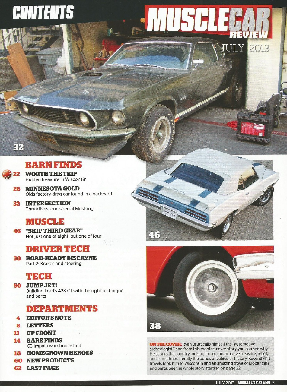 MUSCLE CAR REVIEW 2013 JULY - W-30, 1 of 4 TRANS AM DROPTOP, 69 GT STANG