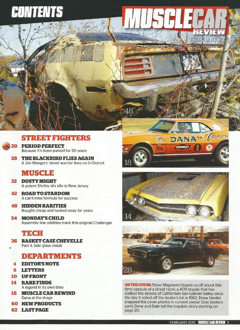 MUSCLE CAR REVIEW 2015 FEB - AAR CUDA, W-30, 62 409 IMPALA, 67 GT500*