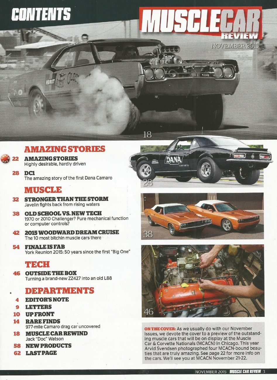 MUSCLE CAR REVIEW 2015 NOV - DONOHUE JAVELIN, W-30, MACH 1, SC/RAMBLER*