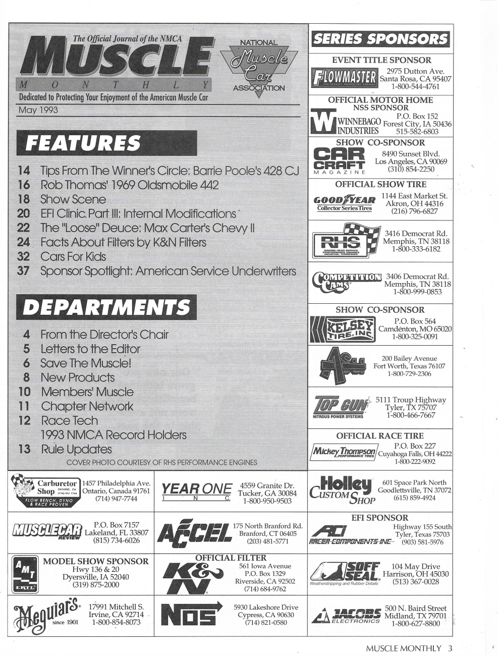 MUSCLE MONTHLY 1993 MAY - EFI CLINIC PART III, 428 CJ TIPS, AIR FILTERS
