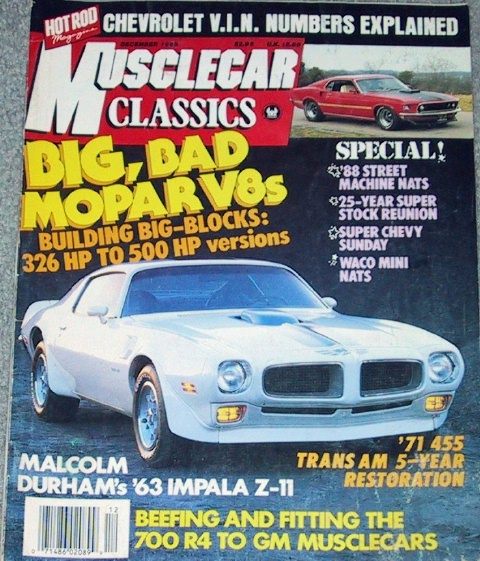Reviews MUSCLECAR CLASSICS 1988 DEC - Z-11,GT500KR,426 LT-WT