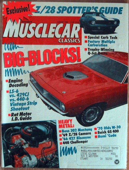 MUSCLECAR CLASSICS 1990 AUG - YENKO, SHOOTOUT, GT350H
