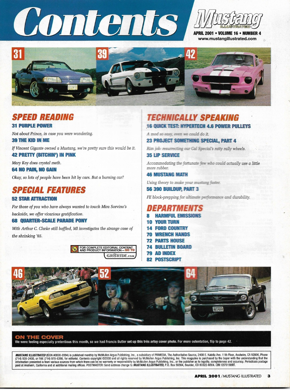 Reviews MUSTANG ILLUSTRATED 2001 APR - RALLY RIMS, 4.6 UNDERDRIVE PULLEYS, HOT ROD MATH