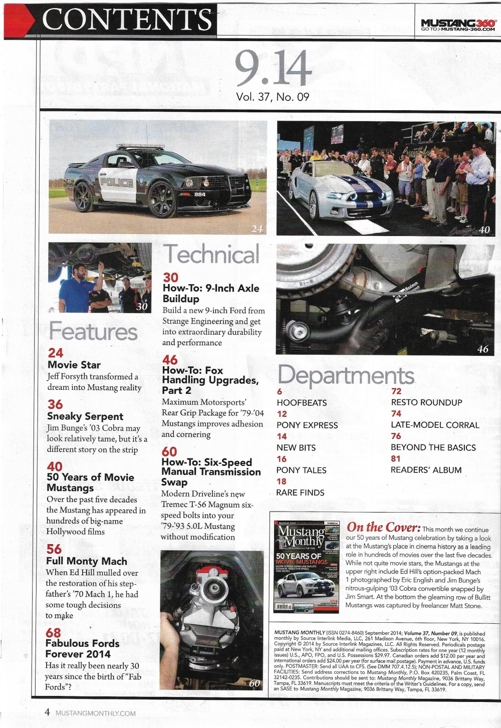 Reviews MUSTANG MONTHLY 2014 SEPT - '03 COBRA-NOS, 50 YRS OF MOVIE STANGS, 6 GEARS-FOX