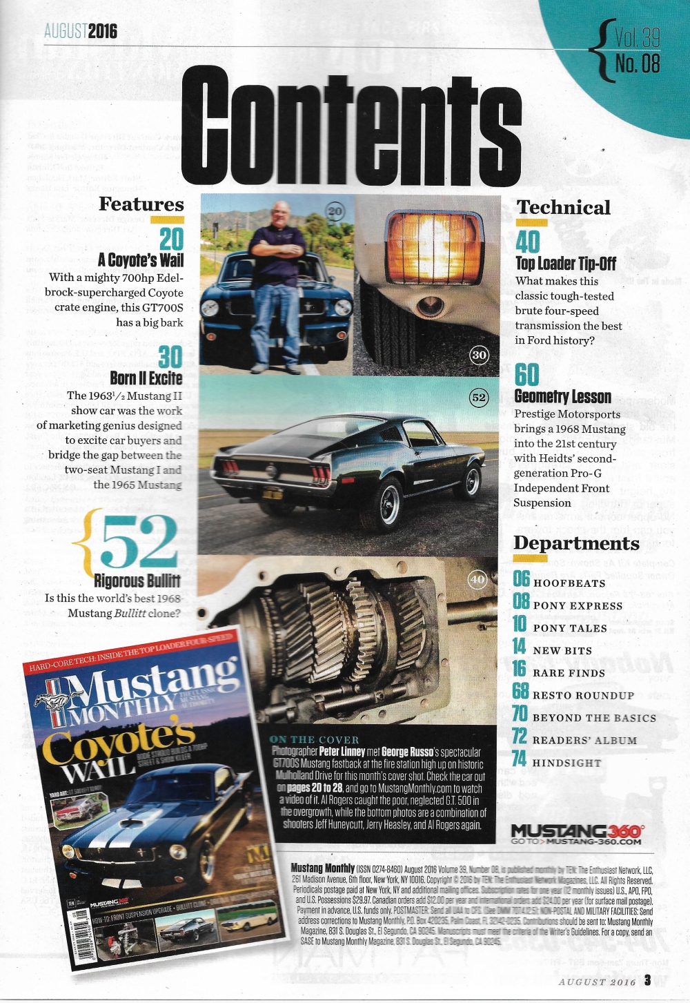 Reviews MUSTANG MONTHLY 2016 AUG - COYOTE'S WAIL, '63-1/2 MUSTANG II, '68 BULLITT CLONE
