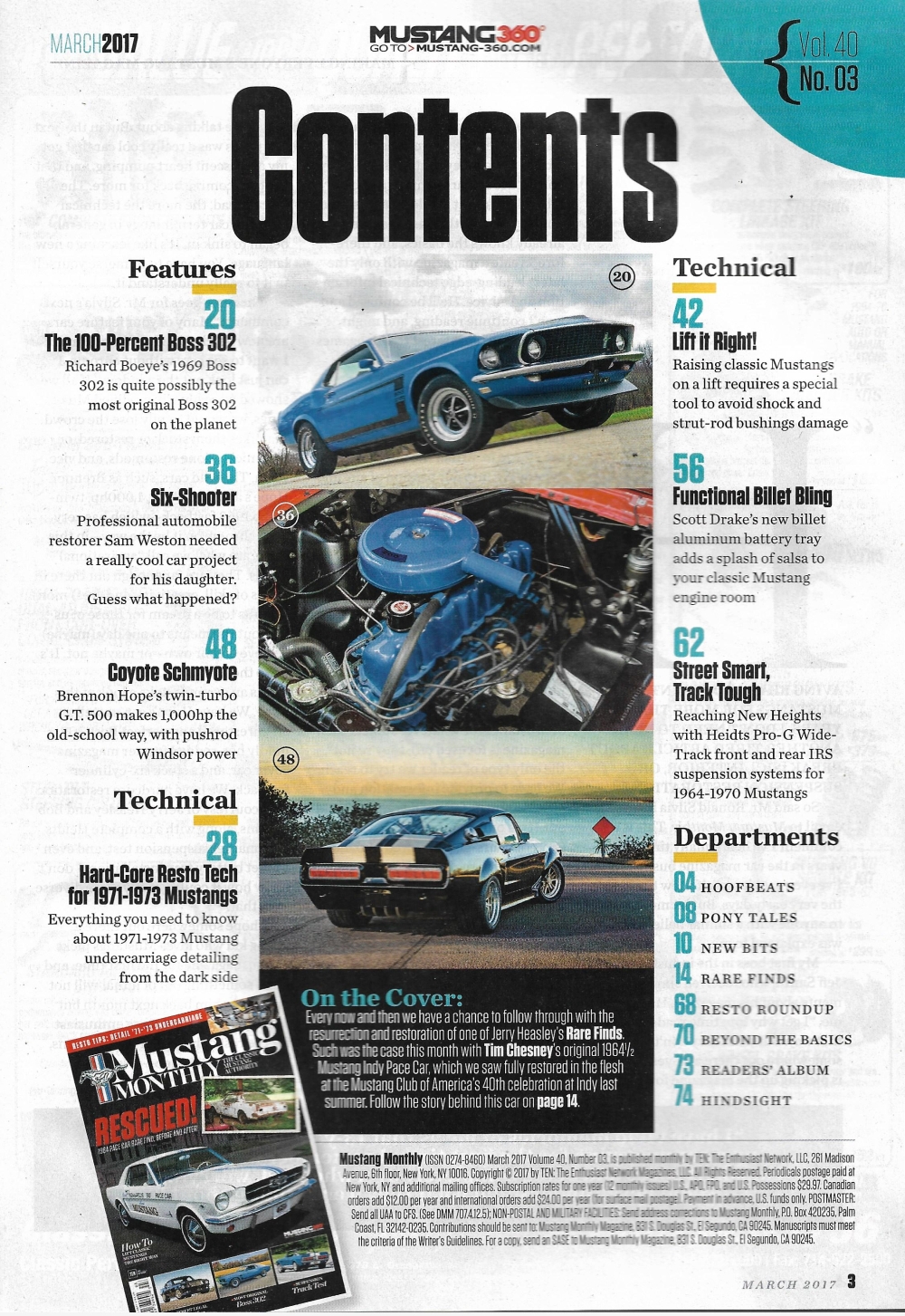 Reviews MUSTANG MONTHLY 2017 MAR - 71-73 UNDER SIDE RESTO, HOW TO LIFT, '64 PACE RESCUE*