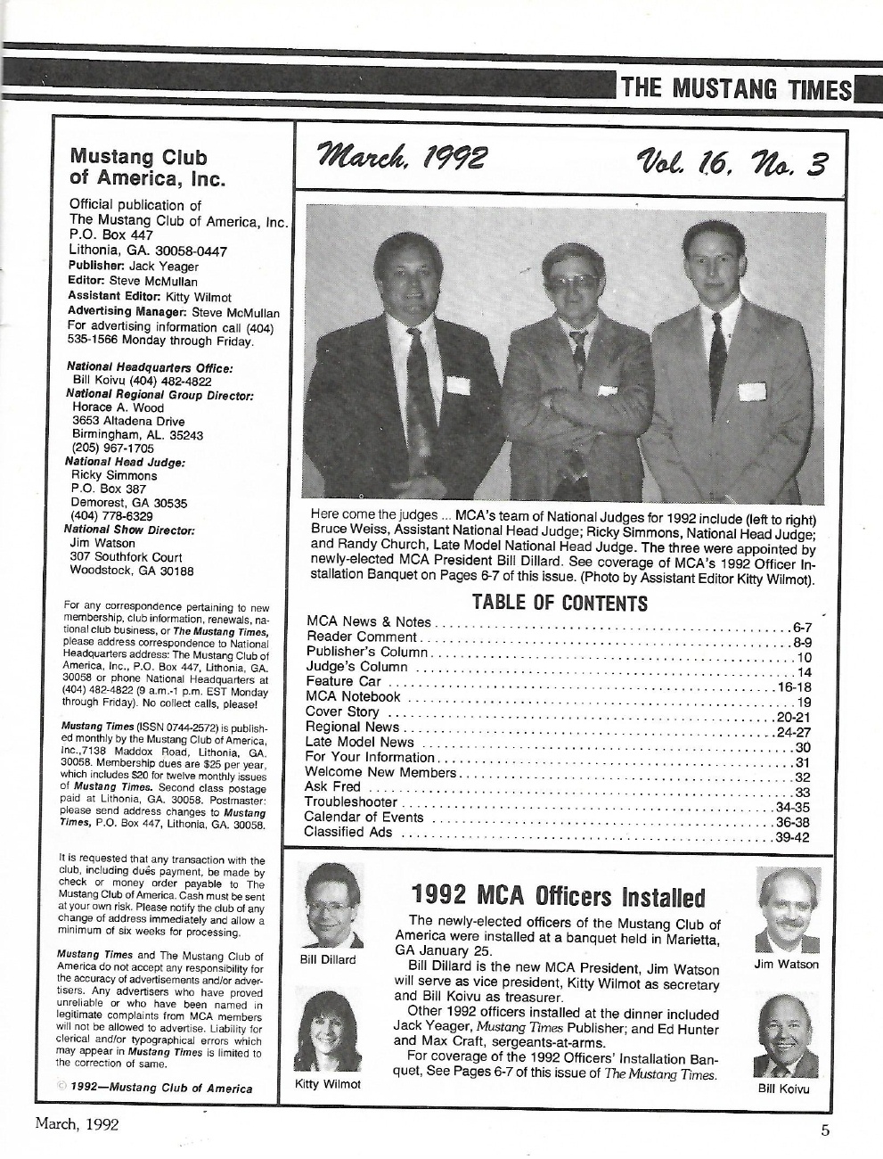 Reviews MUSTANG TIMES 1992 MAR - MUSTANG CLUB OF AMERICA