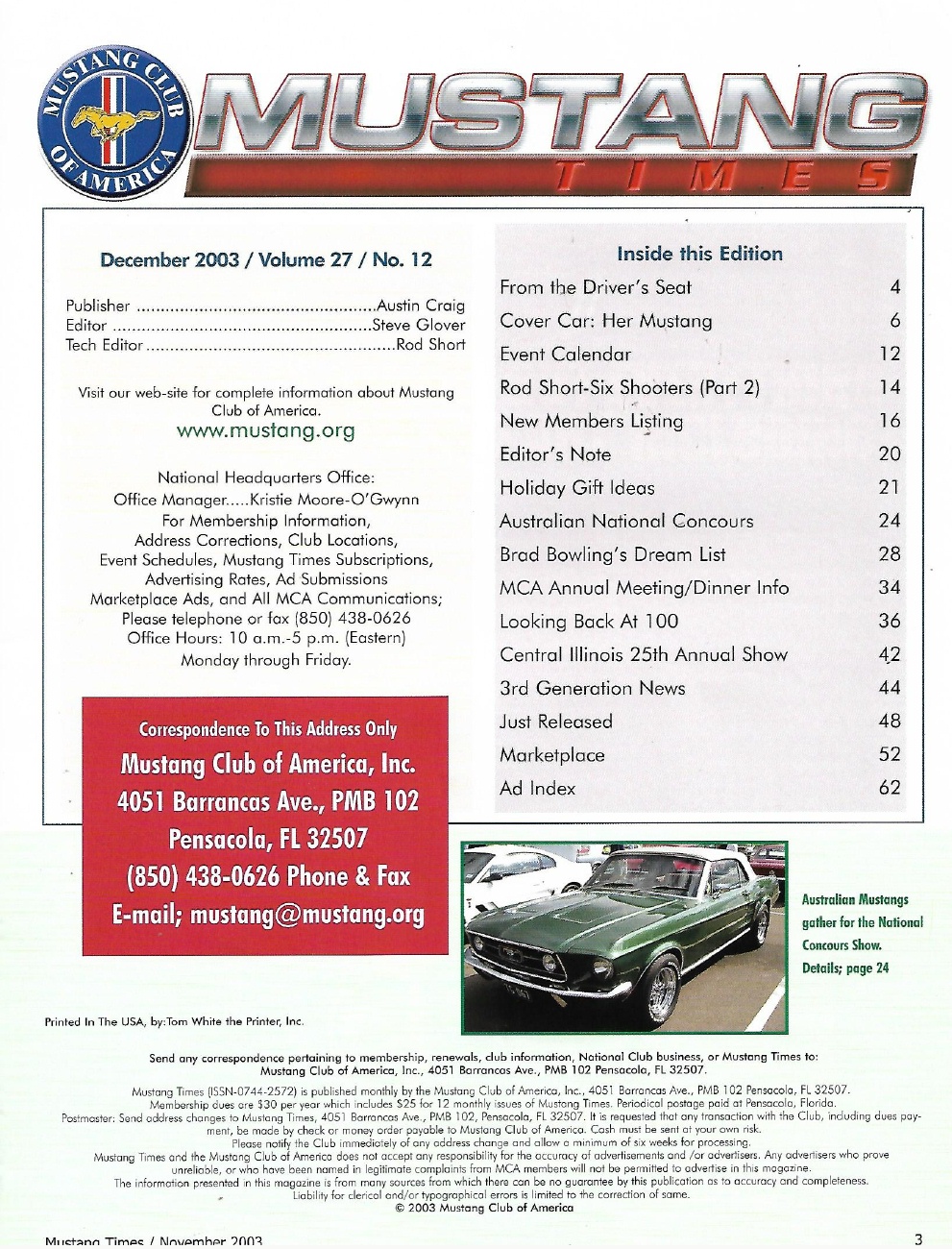 Reviews MUSTANG TIMES 2003 DEC - MUSTANG CLUB OF AMERICA