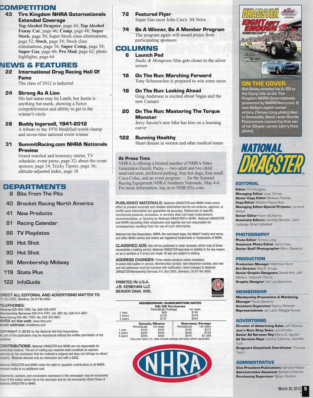 Reviews NATIONAL DRAGSTER 2012 MAR 30 -