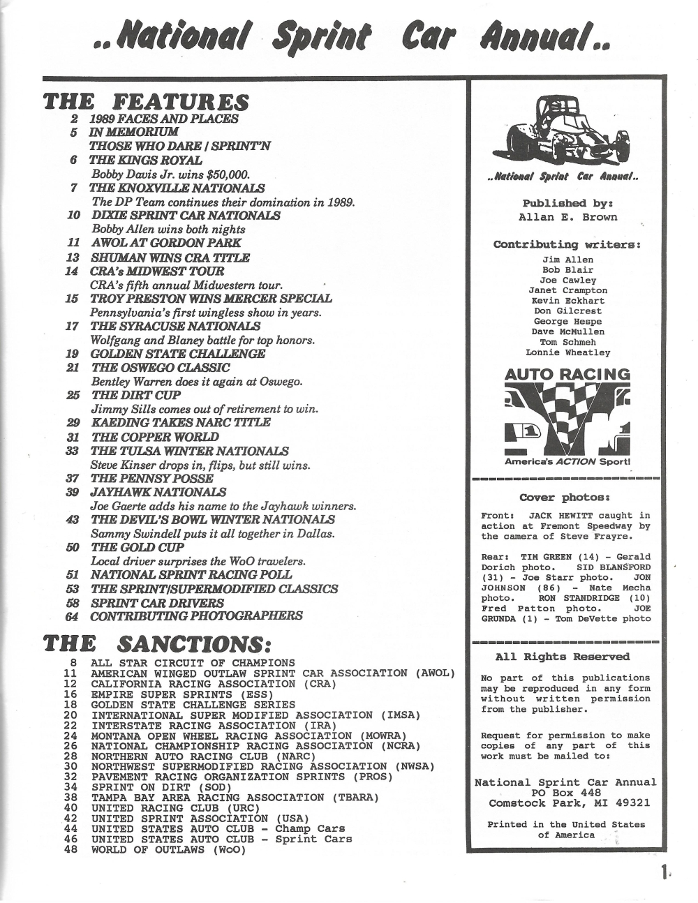Reviews NATIONAL SPRINT CAR ANNUAL 1989 EDITION - PHOTOS & STORIES