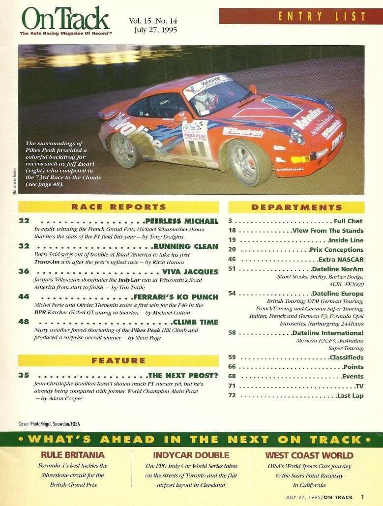 ON TRACK 1995 JULY 27 -This magazine is the "Official Publication of the Sports Car Club of America"There is no description for this magazine yet. See picture of cover and contents below for details.