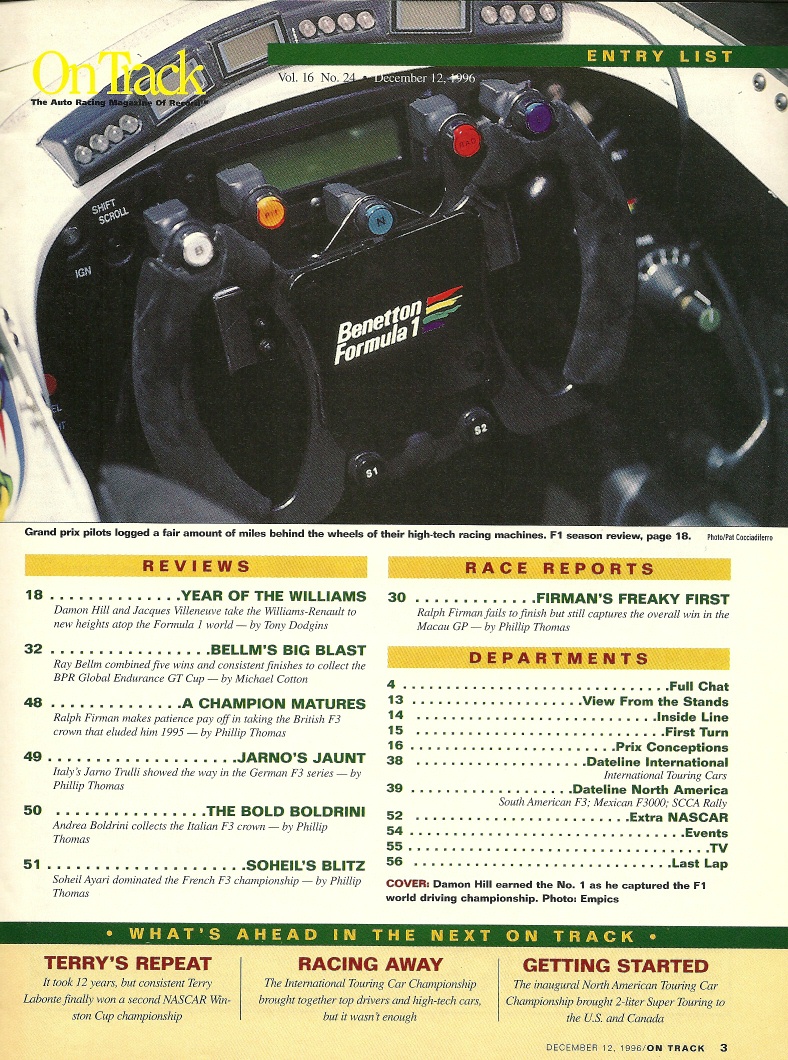 Reviews ON TRACK 1996 DEC 12 - WEEKLY RACING MAGAZINE