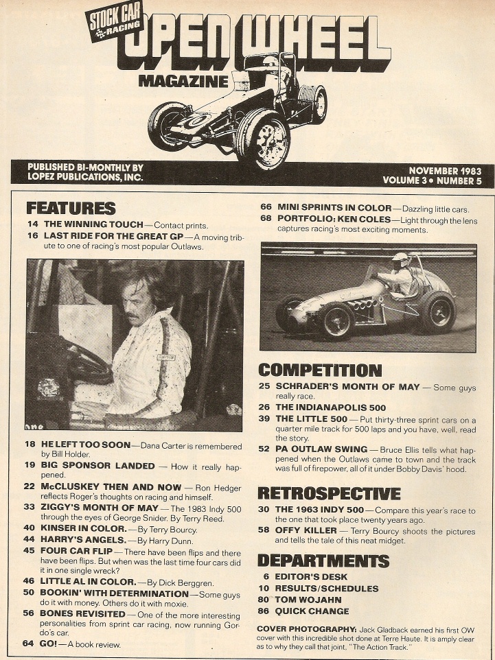 Reviews OPEN WHEEL 1983 NOV - GARY PATTERSON, GEORGE SNIDER, AL UNSER, INDY 500, DANA