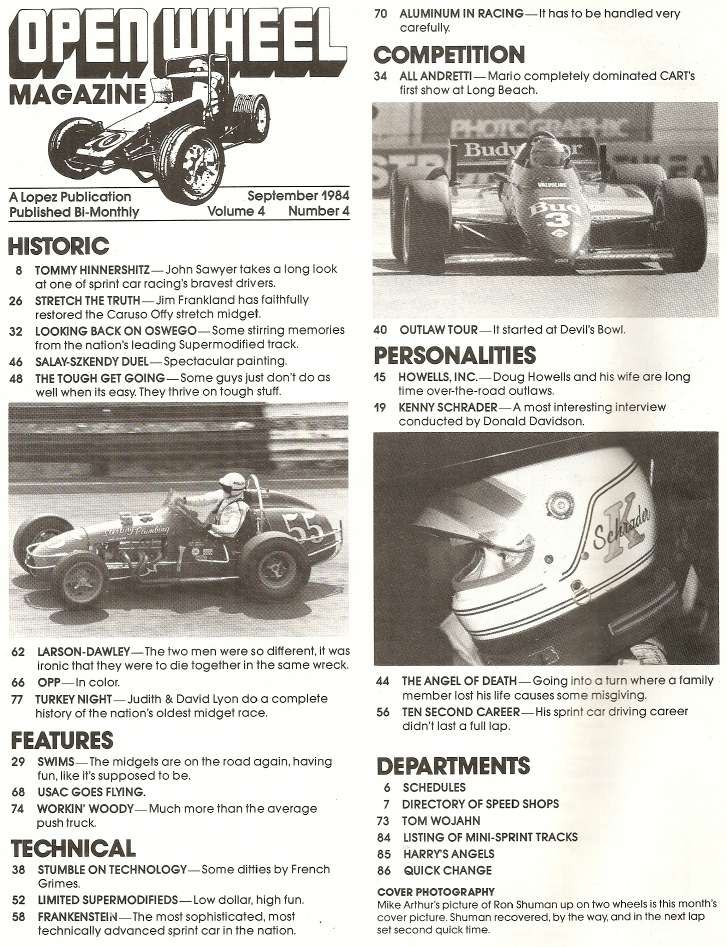 Reviews OPEN WHEEL 1984 SEPT - LARSON-DAWLEY, ANDRETTI, TURNKEY NIGHT, HINNERSHITZ*