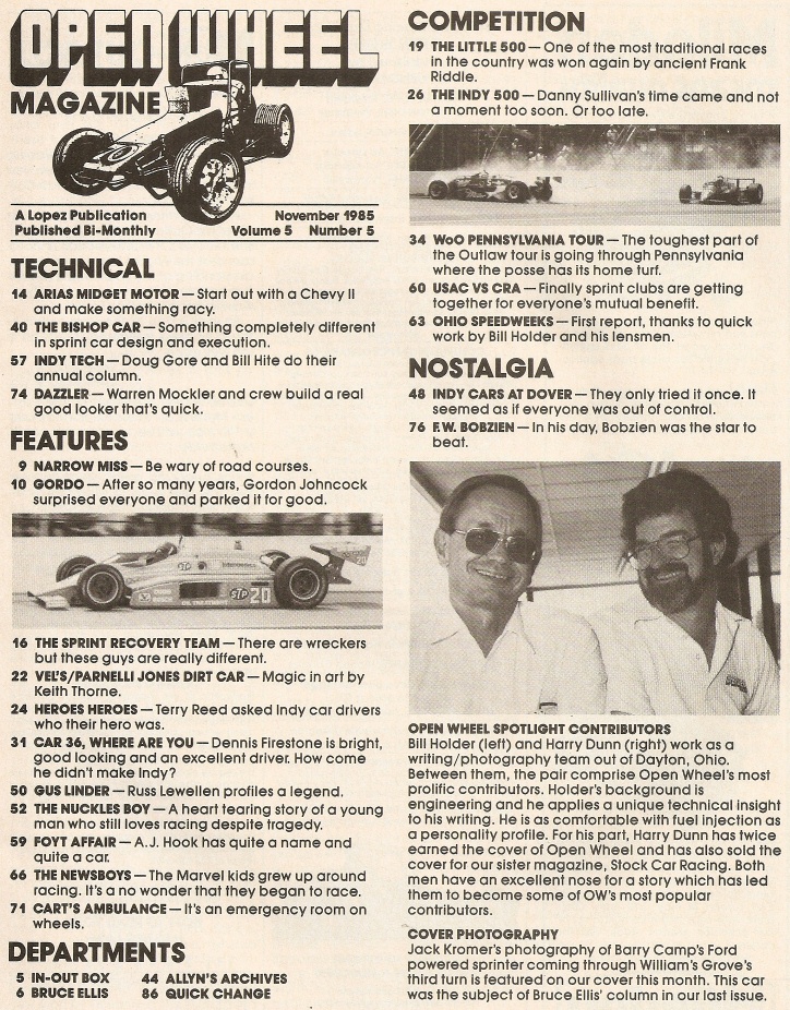 Reviews OPEN WHEEL 1985 NOV - INDY 500 Spcl, JEFF NUCKLES, ARIAS-CHEVY MIDGET ENGINE